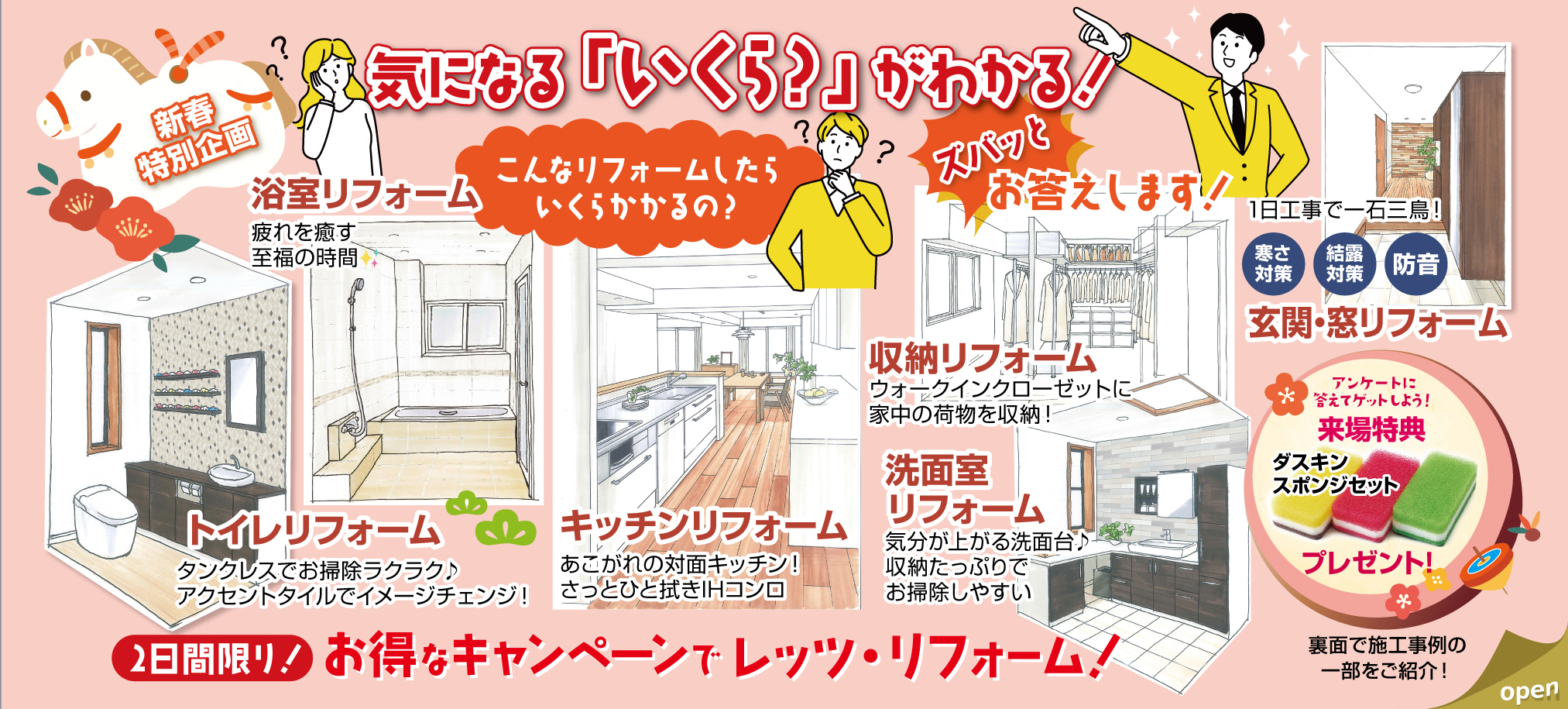 水回りなどリフォームからスケルトンリフォームまで、お気軽にご来場ください!
