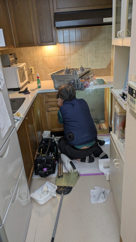 今回はガスコンロを先に新規に交換しました。