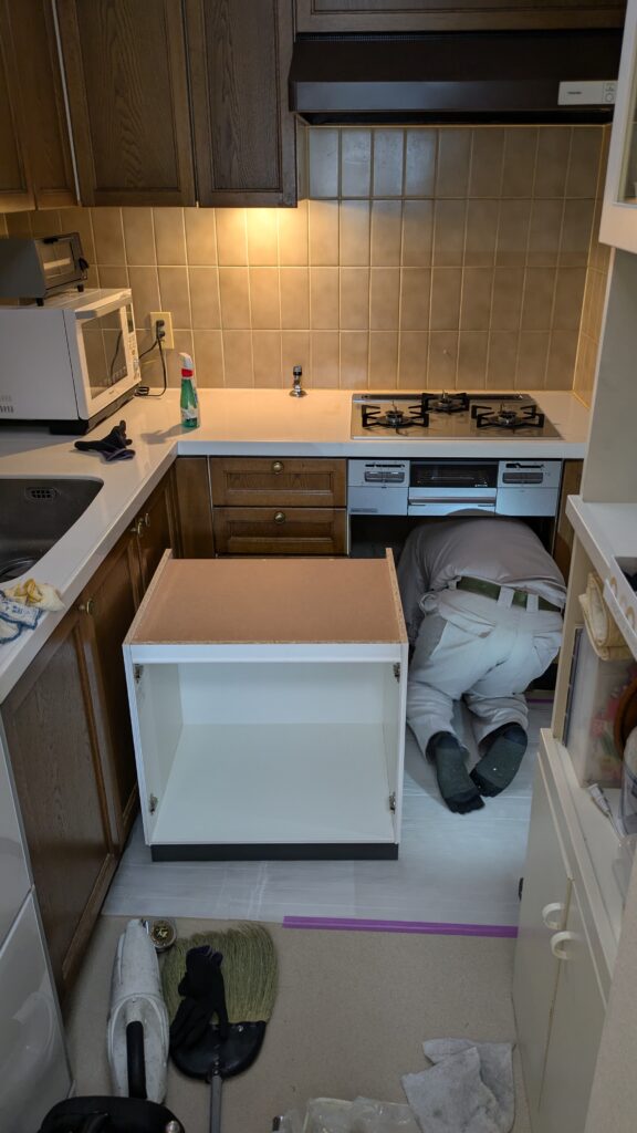 今回はガスコンロと一緒にコンベックをキャビネットにした工事をご紹介します。