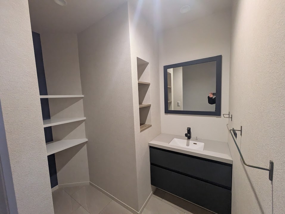 もともとは、収納スペースだった箇所に洗面化粧台を移設しました。