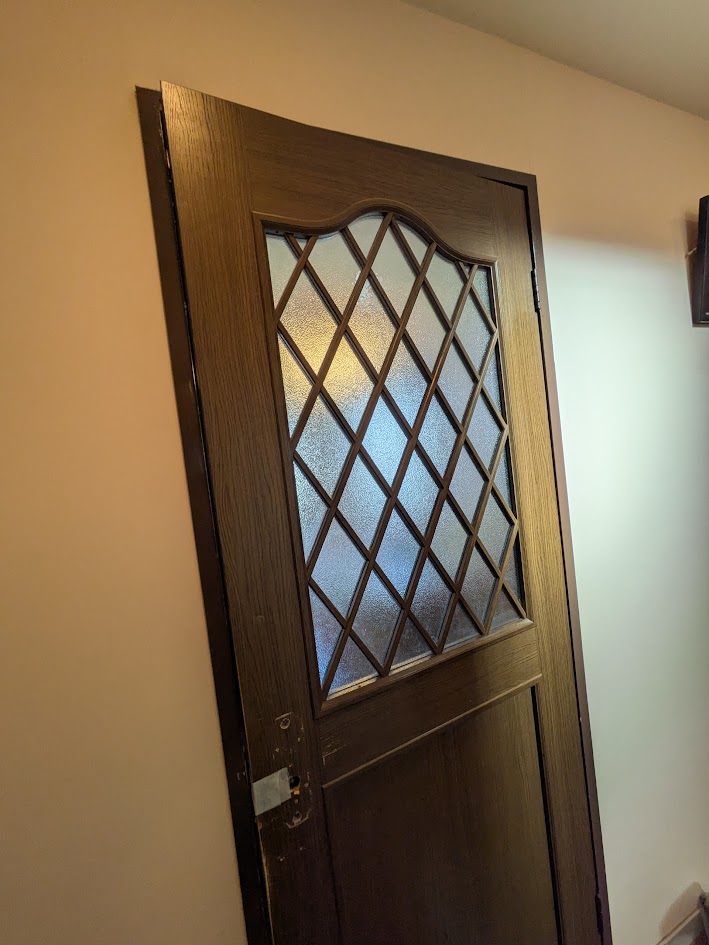 周りの壁紙を貼り替えずに扉と枠だけの交換をしました。