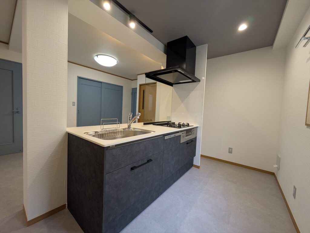 そしてキッチンを取り付け、床にフロアタイルを上張りしたら完成です!