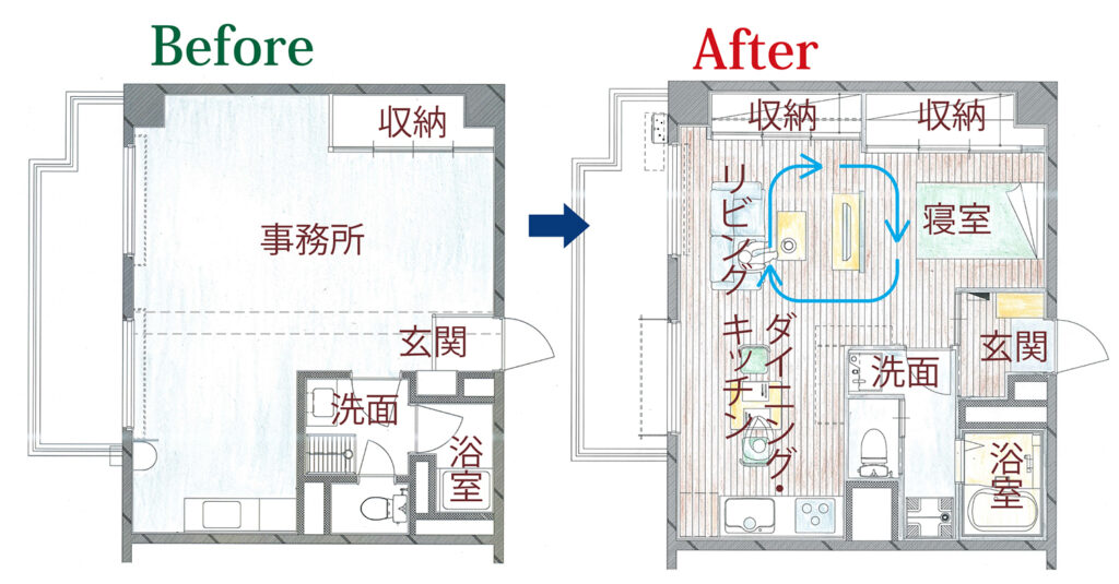 これまで忙しくお仕事をされてこられたS様。これからの人生を毎日ゆったり過ごしたいと、事務所だった築40年のマンションをフルリフォームしました。